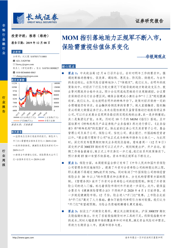 【长城证券】【20191208】非银周观点:MOM指引落地助力正规军不断入市,保险需重视估值体系变化-37页