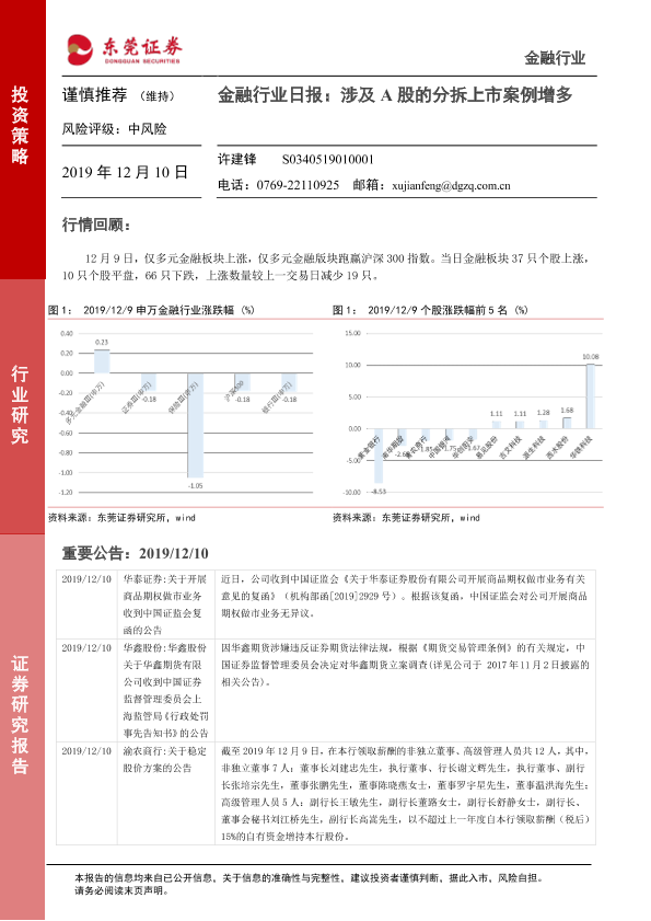 【东莞证券】【20191210】金融行业日报:涉及A股的分拆上市案例增多-4页