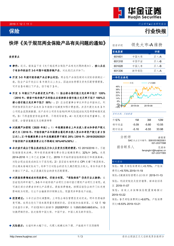 【华金证券】【20191211】快评《关于规范两全保险产品有关问题的通知》-3页