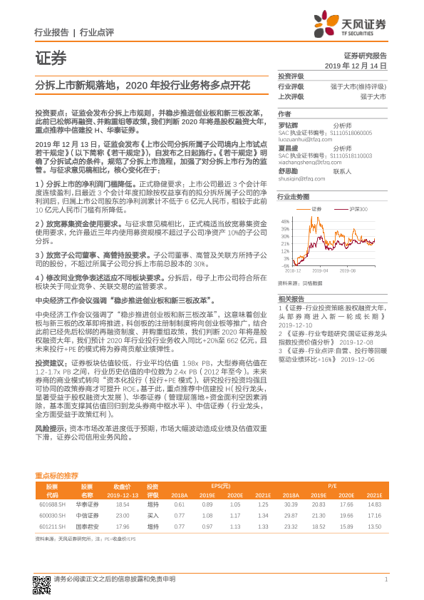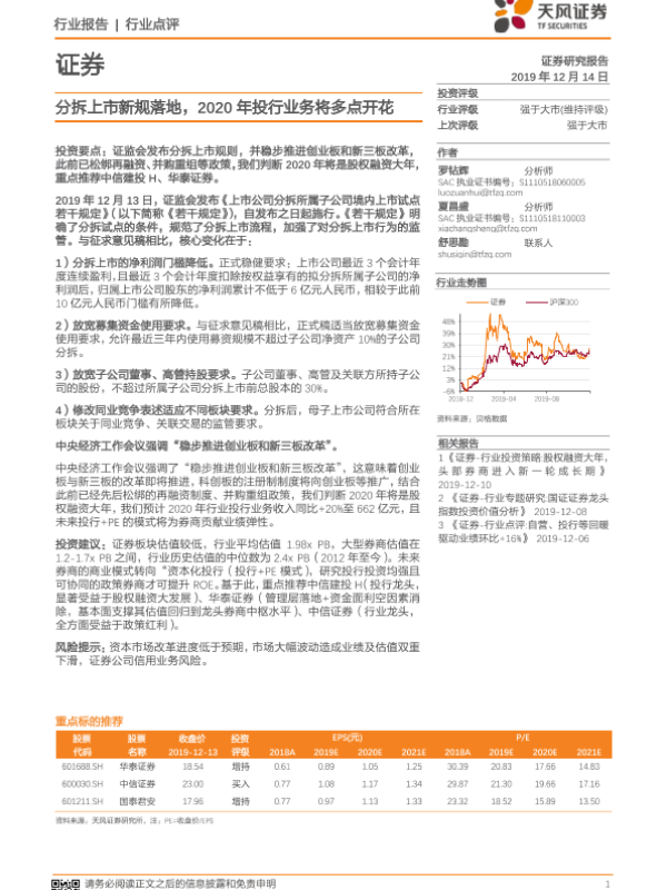 【天风证券】【20191214】证券行业点评:分拆上市新规落地,2020年投行业务将多点开花-3页