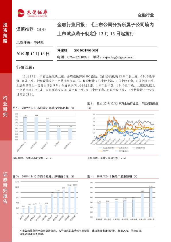 【东莞证券】【20191216】金融行业日报:《上市公司分拆所属子公司境内上市试点若干规定》12月13日起施行-7页