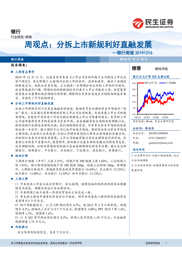 【民生证券】【20191216】银行周报:分拆上市新规利好直融发展-16页