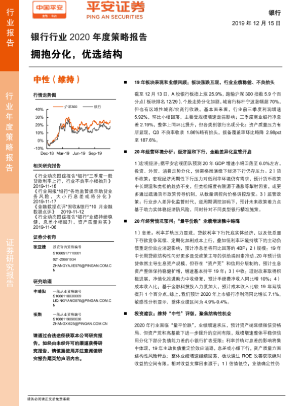 【平安证券】【20191215】银行行业2020年度策略报告:拥抱分化,优选结构-40页