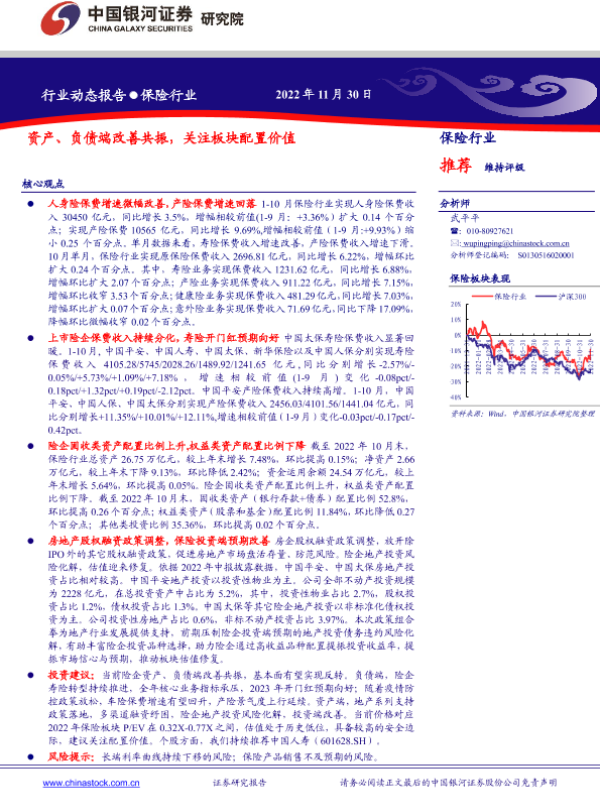 【银河证券】【20221130】保险行业动态报告:资产、负债端改善共振,关注板块配置价值-19页