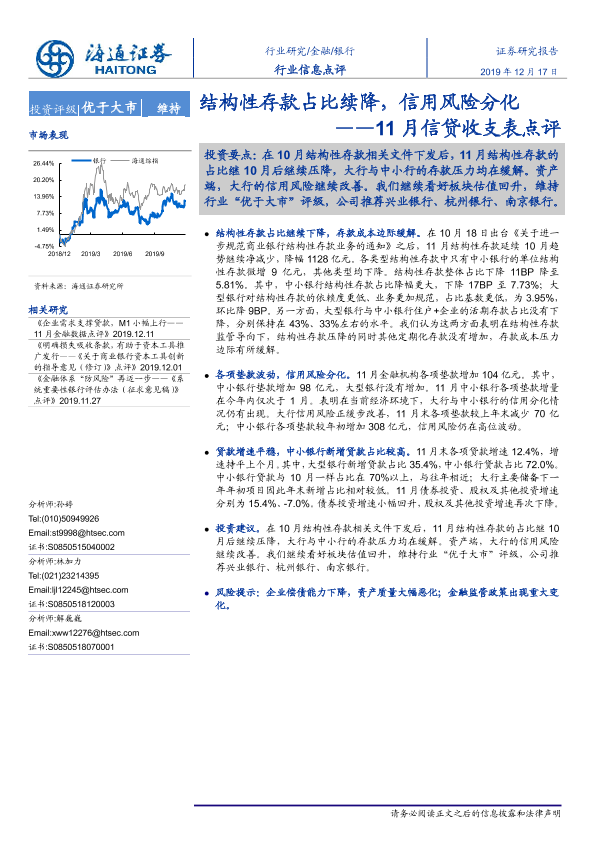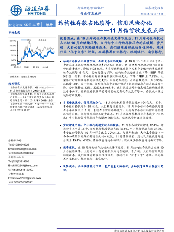 【海通证券】【20191217】银行11月信贷收支表点评:结构性存款占比续降,信用风险分化-3页