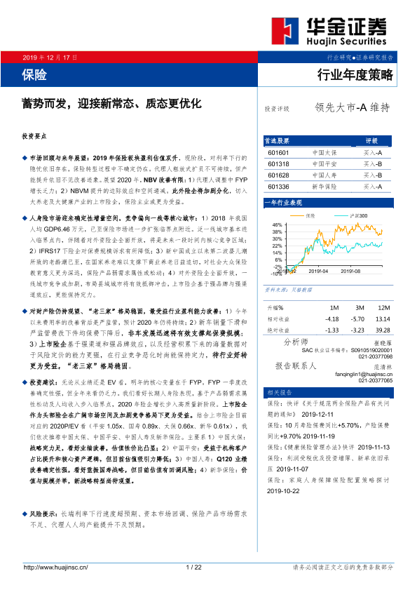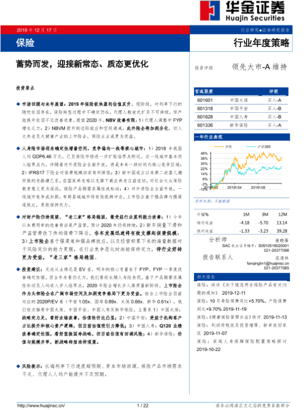【华金证券】【20191217】保险行业年度策略:蓄势而发,迎接新常态、质态更优化-22页
