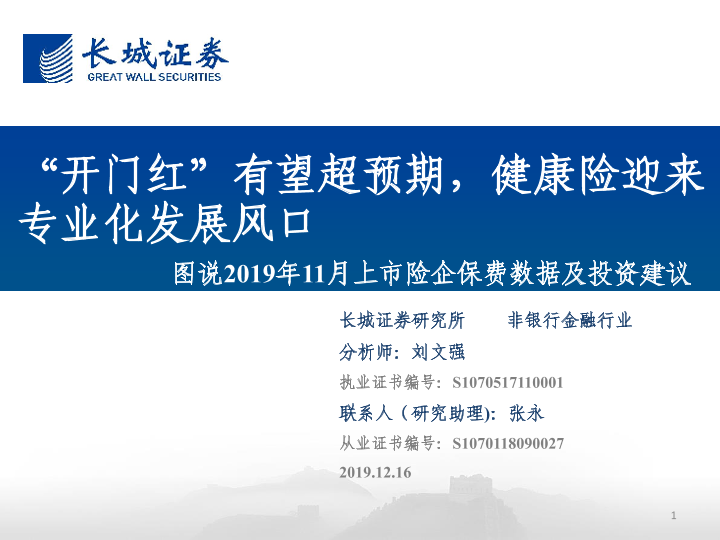 【长城证券】【20191216】图说2019年11月上市险企保费数据及投资建议-23页