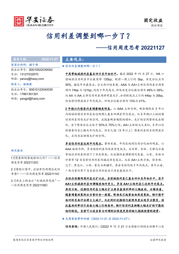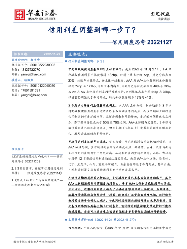 【华安证券】【20221127】信用周度思考:信用利差调整到哪一步了?-23页