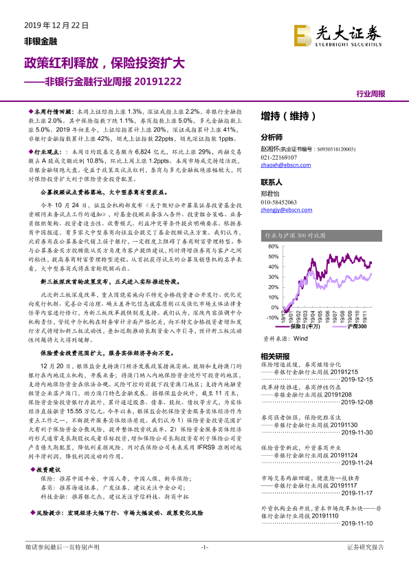 【光大证券】【20191222】非银行金融行业周报:政策红利释放,保险投资扩大-13页