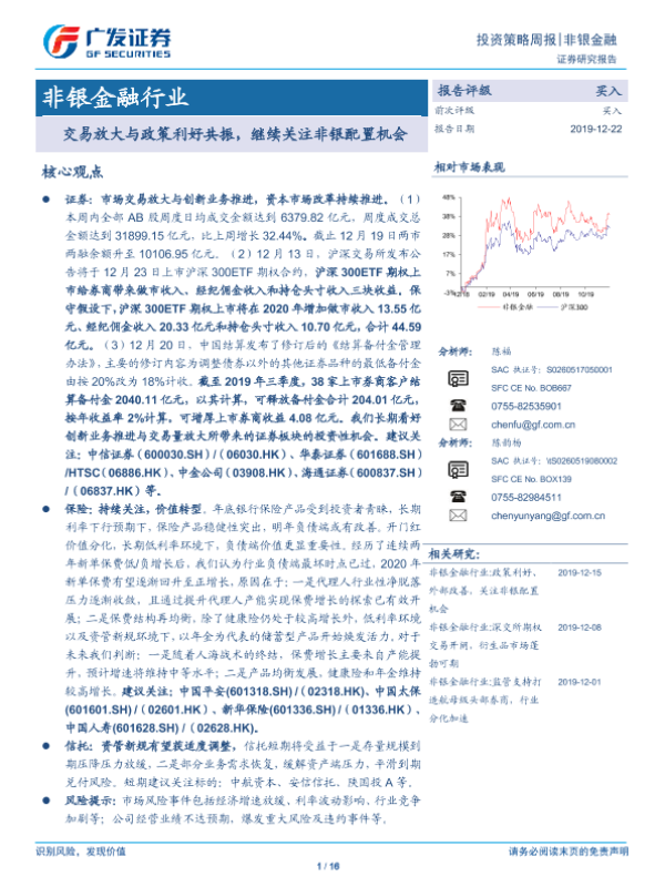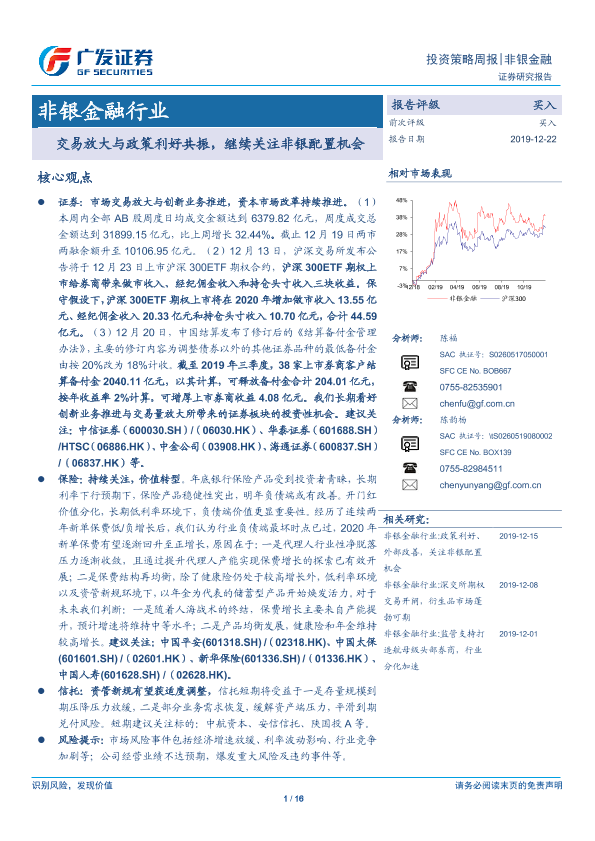 【广发证券】【20191222】非银金融行业投资策略周报:交易放大与政策利好共振,继续关注非银配置机会-16页