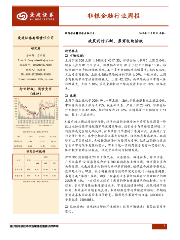 【爱建证券】【20191223】非银金融行业周报:政策利好不断,券商板块活跃-11页