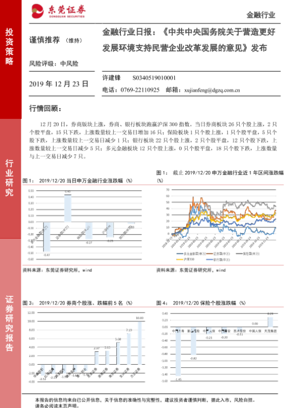 【东莞证券】【20191223】金融行业日报:《中共中央国务院关于营造更好发展环境支持民营企业改革发展的意见》发布-5页