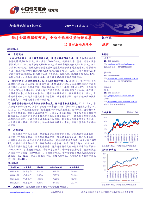 【银河证券】【20191227】12月行业动态报告:经济金融数据超预期,企业中长期信贷持续改善-27页