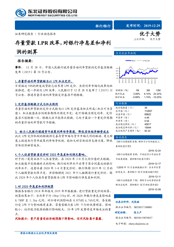 【东北证券】【20191229】存量贷款LPR改革,对银行净息差和净利润的测算-5页
