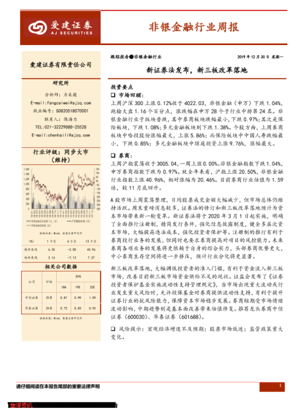 【爱建证券】【20191230】非银金融行业周报:新证券法发布,新三板改革落地-11页