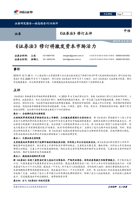 【国信证券】【20191230】《证券法》修订点评:《证券法》修订将激发资本市场活力-4页