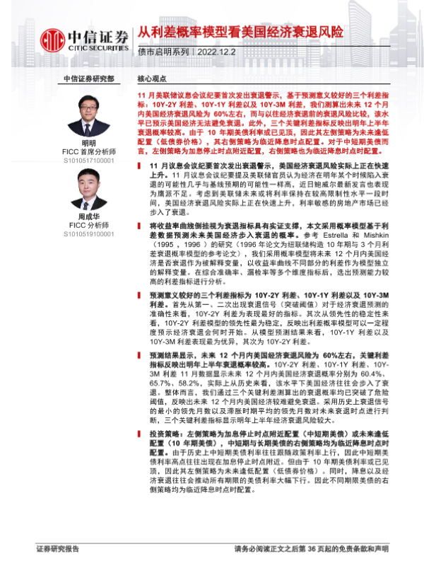 【中信证券】【20221202】从利差概率模型看美国经济衰退风险-37页