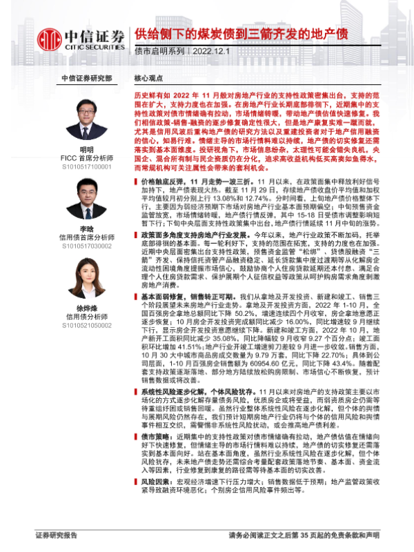 【中信证券】【20221201】供给侧下的煤炭债到三箭齐发的地产债-35页