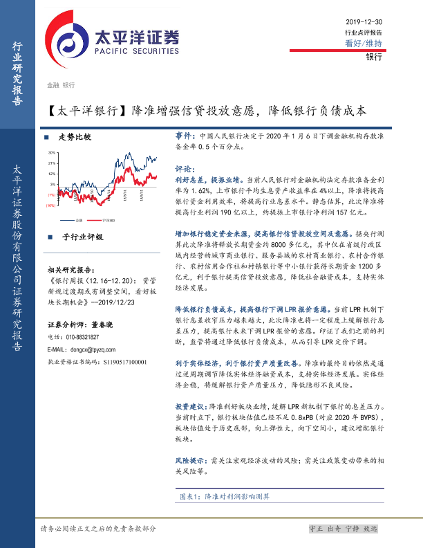 【太平洋证券】【20191230】降准增强信贷投放意愿,降低银行负债成本-5页