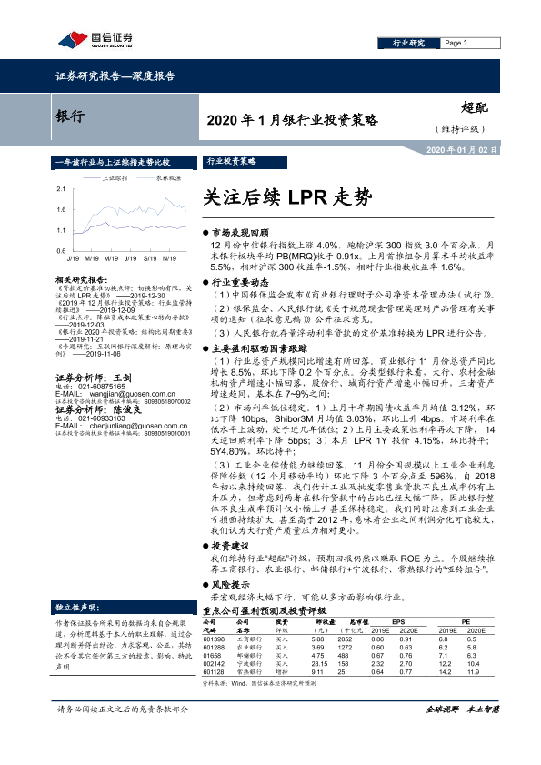【国信证券】【20200102】2020年1月银行业投资策略:关注后续LPR走势-9页