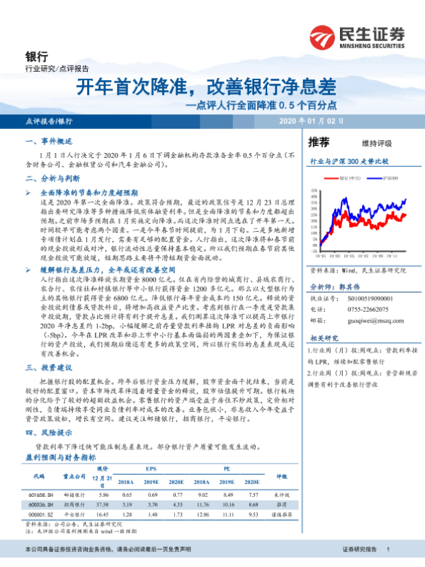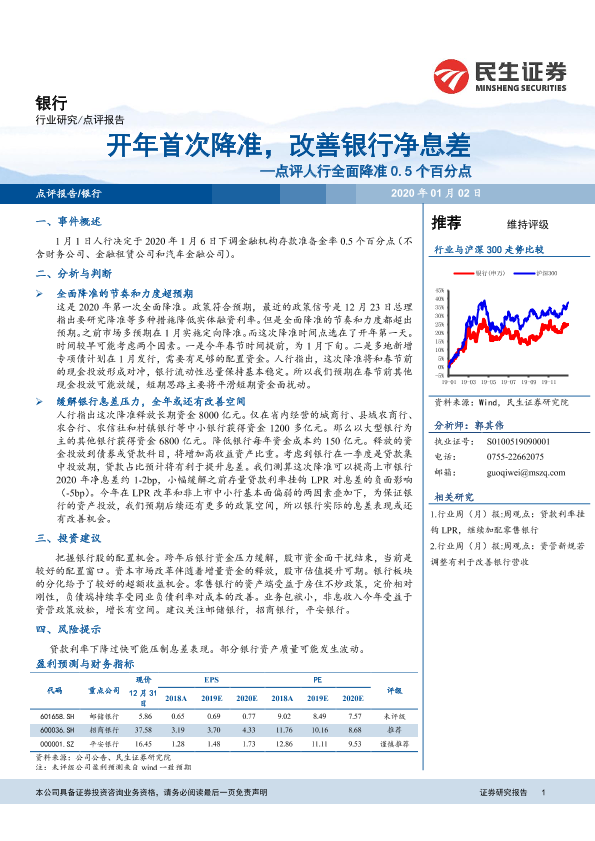 【民生证券】【20200102】开年首次降准,改善银行净息差-7页