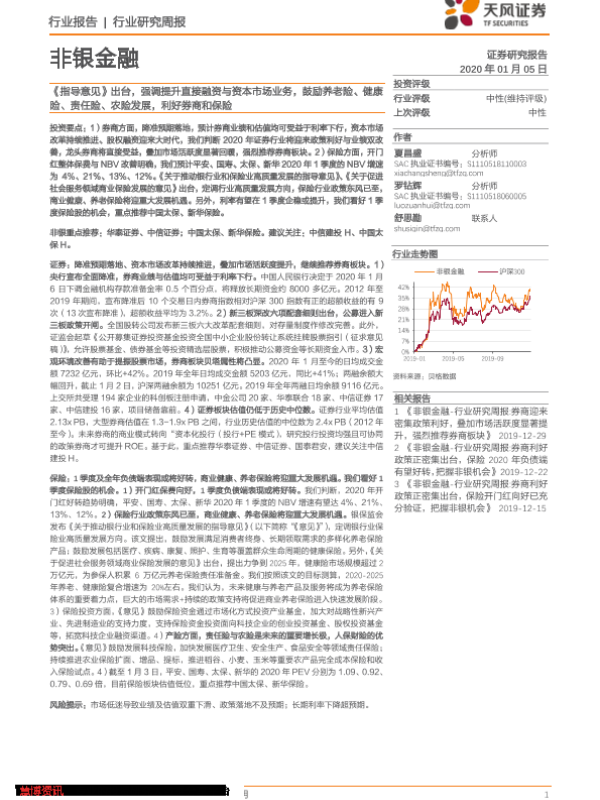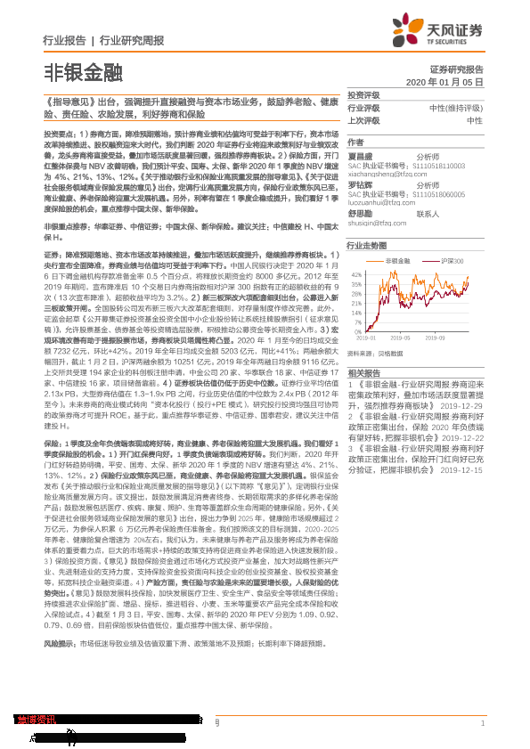 【天风证券】【20200105】非银金融行业研究周报:《指导意见》出台,强调提升直接融资与资本市场业务,鼓励养老险、健康险、责任险、农险发展-8页