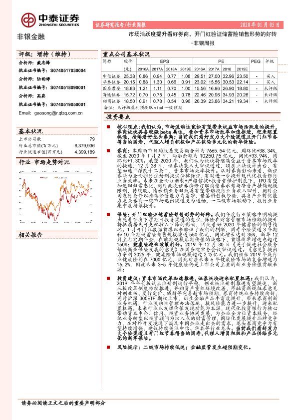 【中泰证券】【20200105】非银周报:市场活跃度提升看好券商,开门红验证储蓄险销售形势的好转-12页