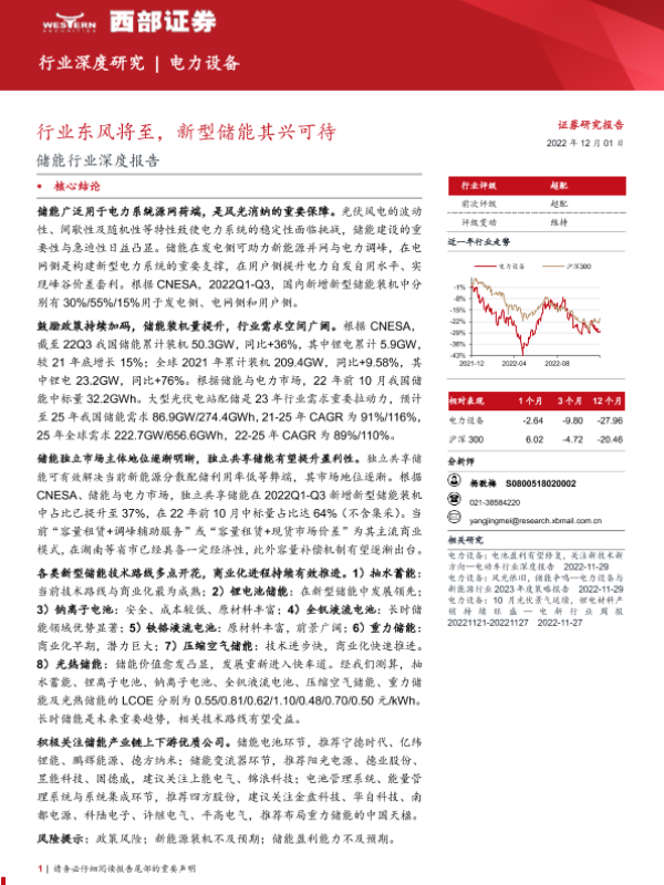 【西部证券】【20221201】储能行业深度报告:行业东风将至,新型储能其兴可待-137页