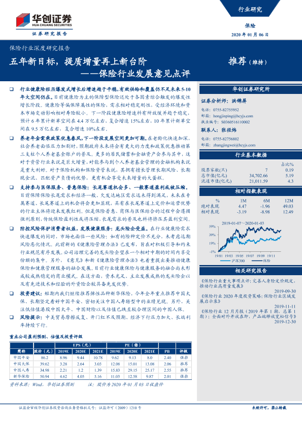 【华创证券】【20200106】保险行业发展意见点评-五年新目标,提质增量再上新台阶-14页