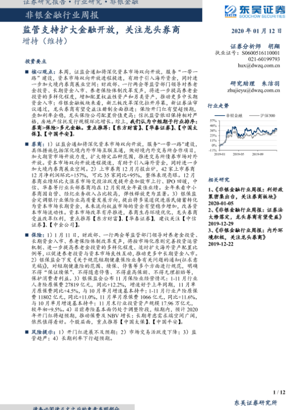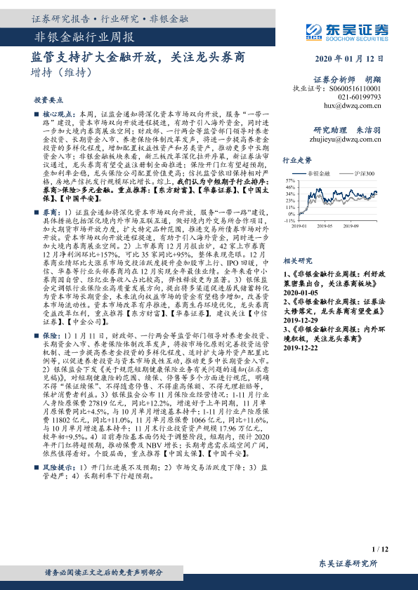 【东吴证券】【20200112】非银金融行业周报:监管支持扩大金融开放,关注龙头券商-12页