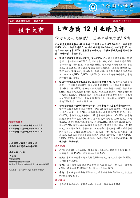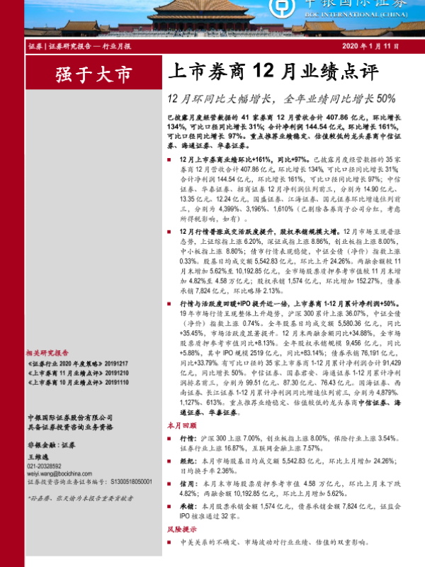 【中银证券】【20200111】上市券商12月业绩点评-13页