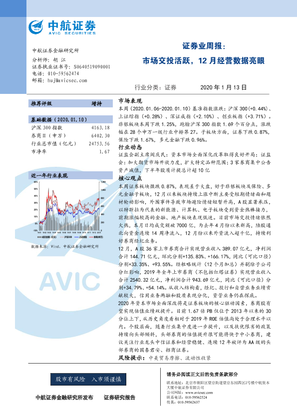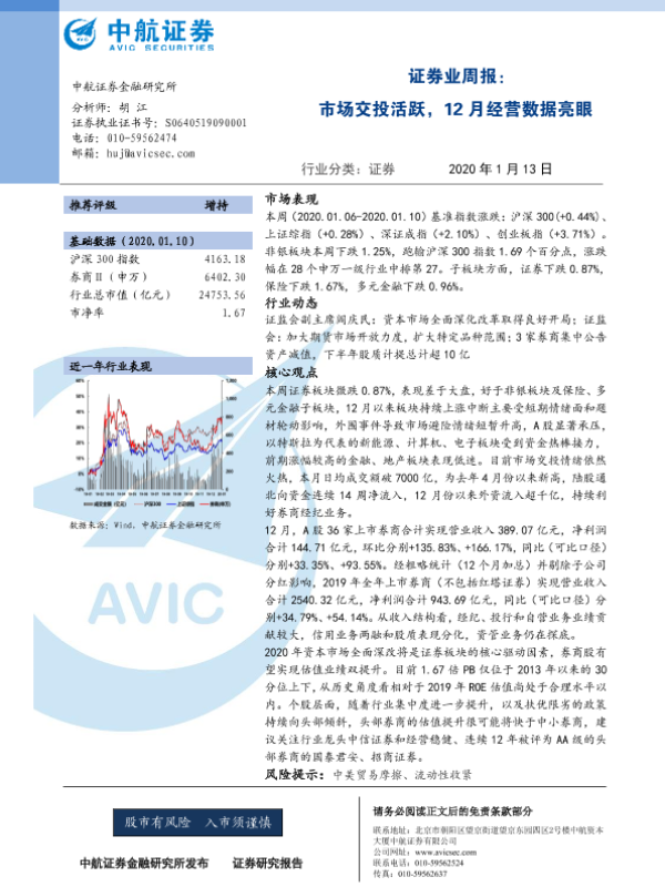 【中航证券】【20200113】证券业周报:市场交投活跃,12月经营数据亮眼-11页