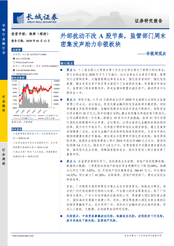 【长城证券】【20200112】非银周观点:外部扰动不改A股节奏,监管部门周末密集发声助力非银板块-36页