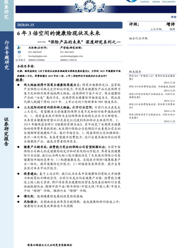 【国泰君安证券】【20200115】6年3倍空间的健康险现状及未来-26页