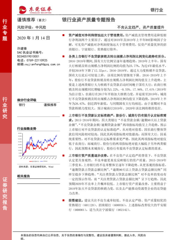 【东莞证券】【20200114】银行业资产质量专题报告:不良认定趋严,资产质量提升-19页