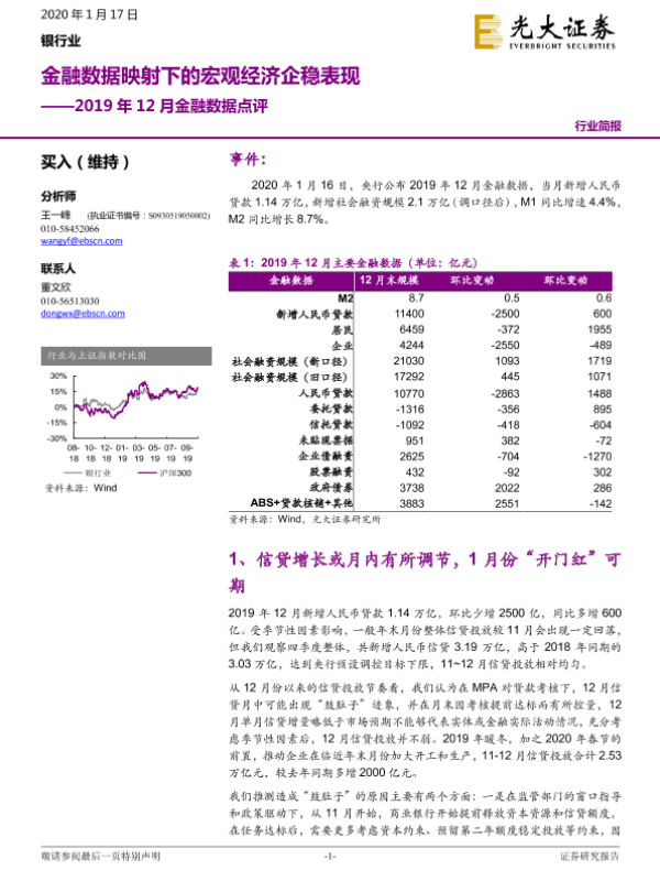 【光大证券】【20200117】银行业2019年12月金融数据点评:金融数据映射下的宏观经济企稳表现-5页