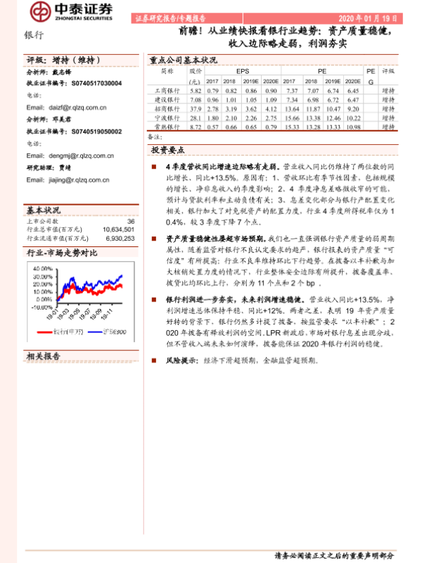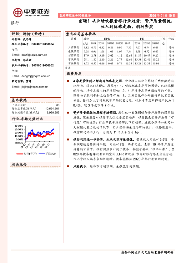 【中泰证券】【20200119】前瞻!从业绩快报看银行业趋势:资产质量稳健,收入边际略走弱,利润夯实-12页