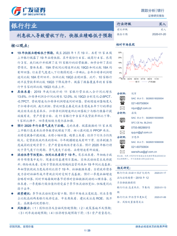 【广发证券】【20200120】银行行业跟踪分析:利息收入导致营收下行,快报业绩略低于预期-23页
