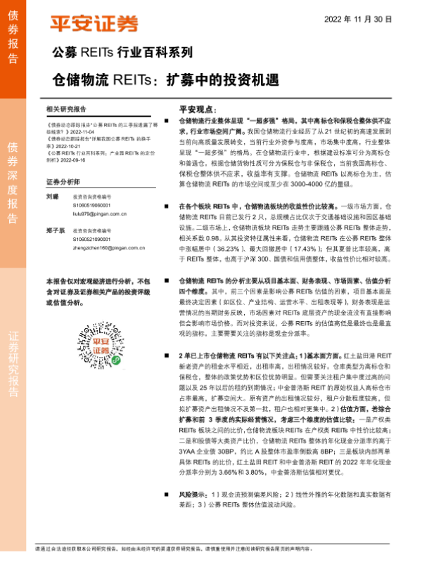 【平安证券】【20221130】公募REITs行业百科系列:仓储物流REITs,扩募中的投资机遇-35页