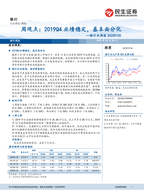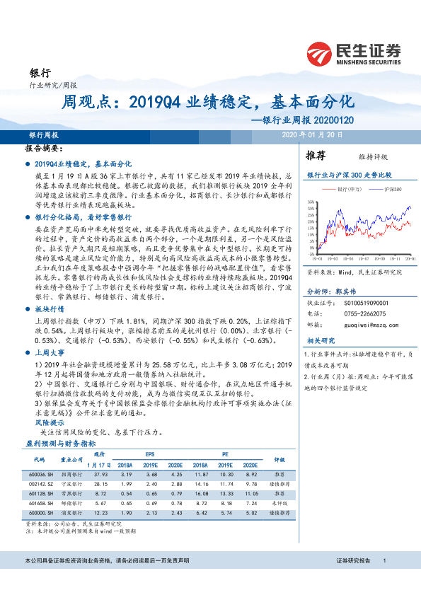 【民生证券】【20200120】2019Q4业绩稳定,基本面分化-15页