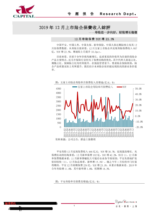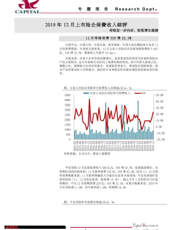 【群益证券】【20200120】2019年12月上市险企保费收入综评-9页