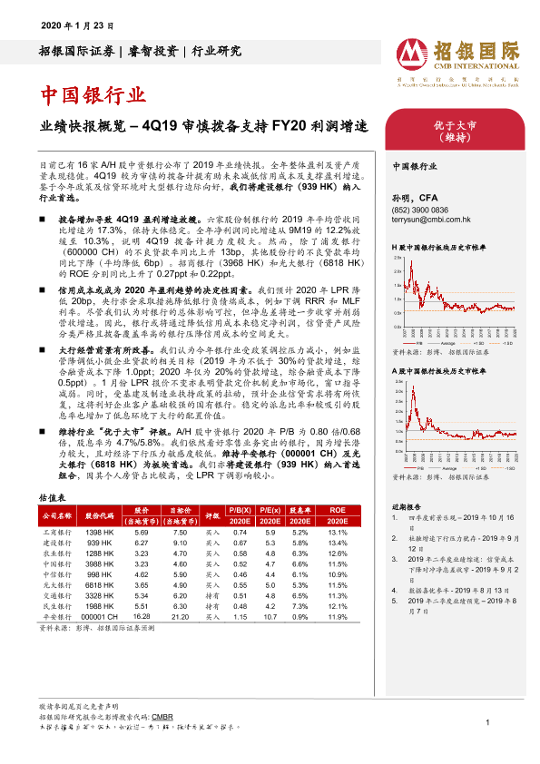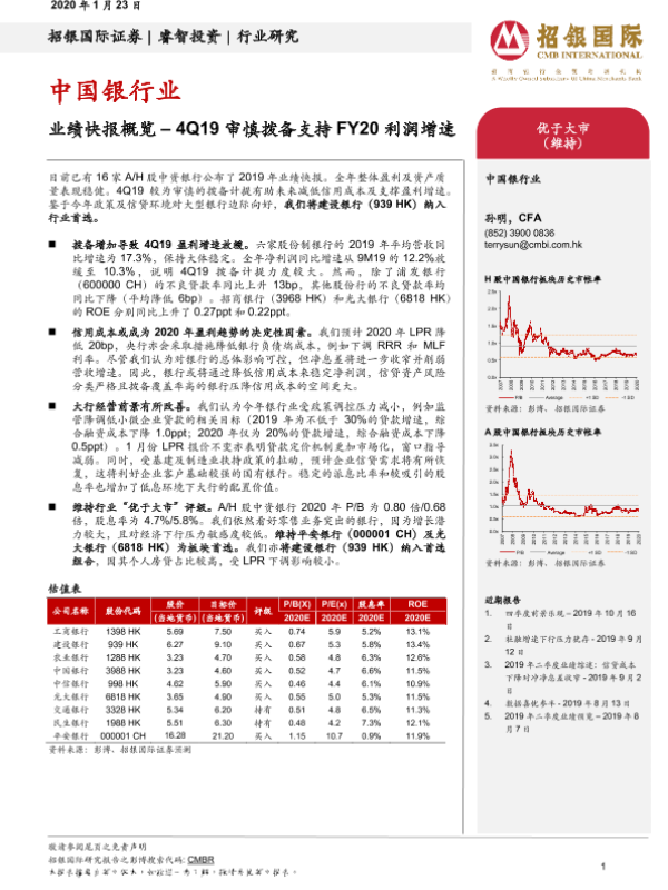 【招银国际证券】【20200123】中国银行业:业绩快报概览–4Q19审慎拨备支持FY20利润增速-4页