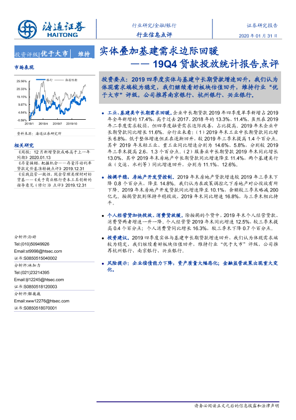 【海通证券】【20200131】19Q4贷款投放统计报告点评:实体叠加基建需求边际回暖-3页