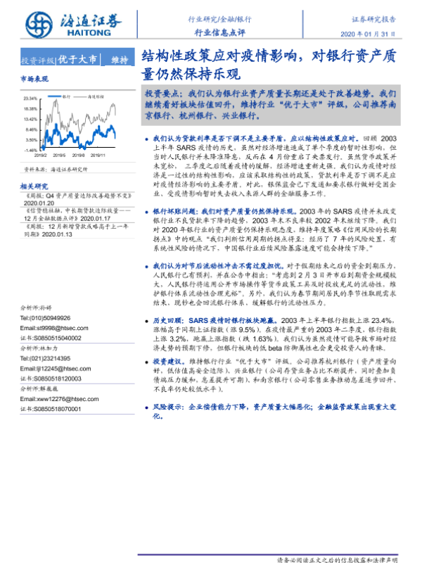 【海通证券】【20200131】银行行业信息点评:结构性政策应对疫情影响,对银行资产质量仍然保持乐观-3页