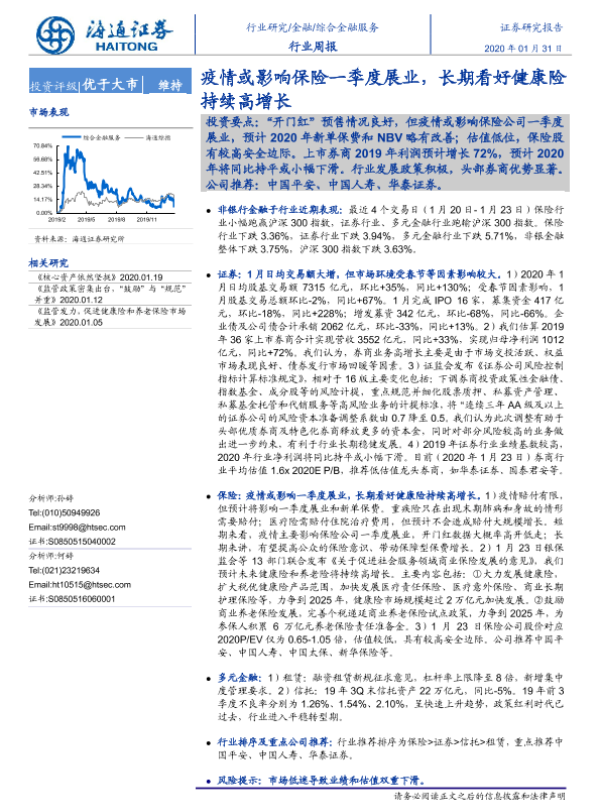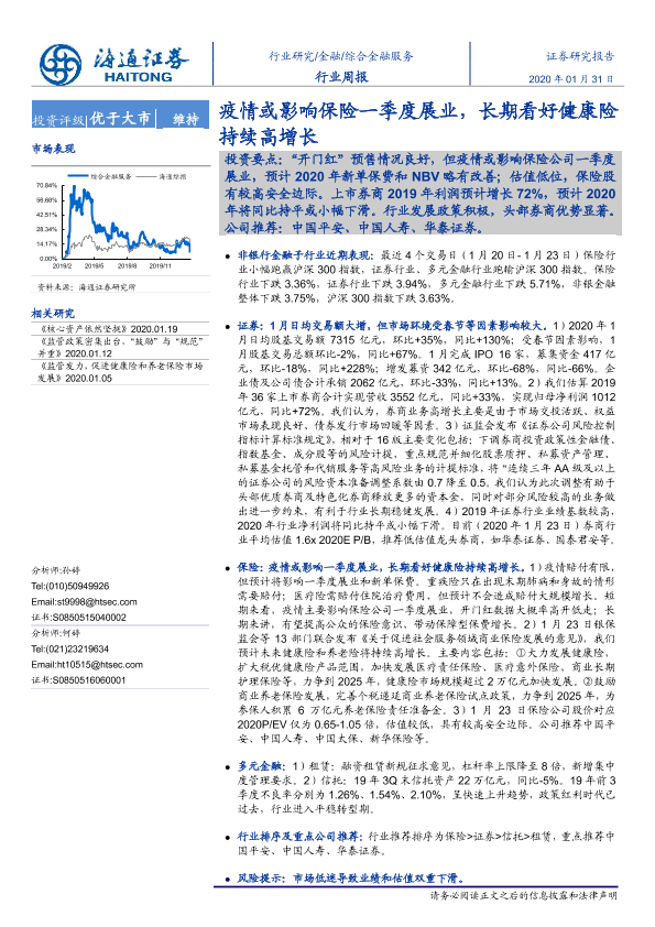 【海通证券】【20200131】综合金融服务行业周报:疫情或影响保险一季度展业,长期看好健康险持续高增长-10页