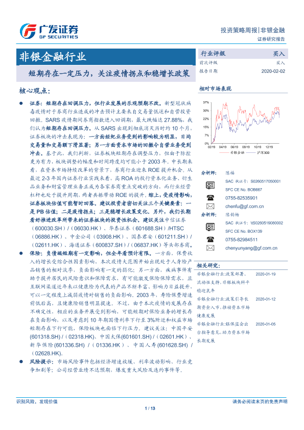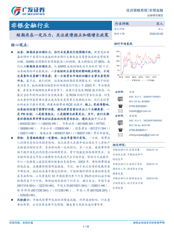 【广发证券】【20200202】非银金融行业投资策略周报:短期存在一定压力,关注疫情拐点和稳增长政策-13页