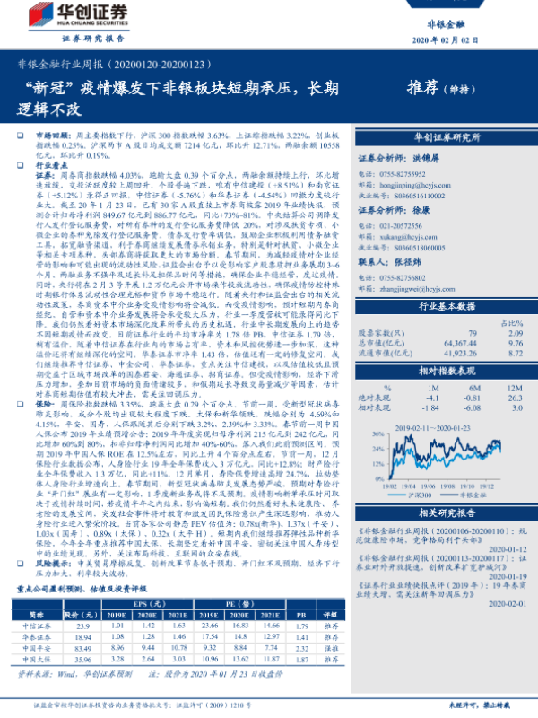 【华创证券】【20200202】非银金融行业周报:“新冠”疫情爆发下非银板块短期承压,长期逻辑不改-17页