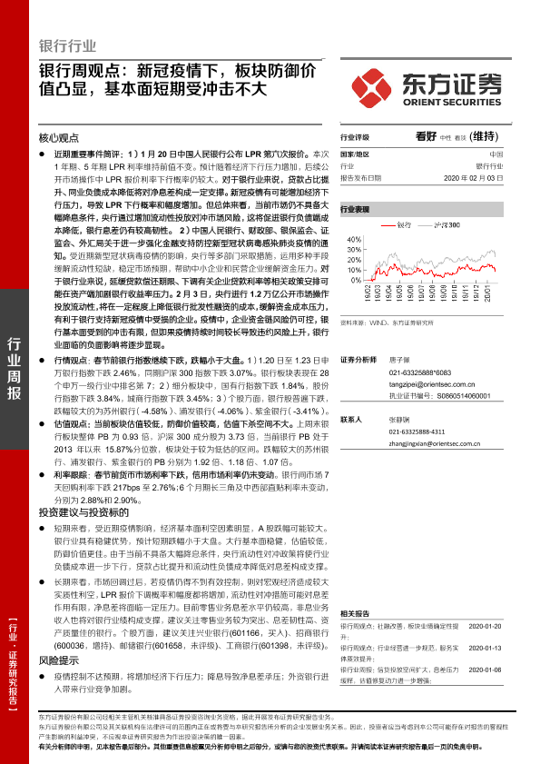 【东方证券】【20200203】银行周观点:新冠疫情下,板块防御价值凸显,基本面短期受冲击不大-14页