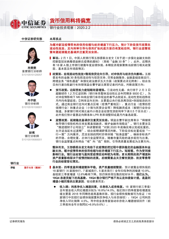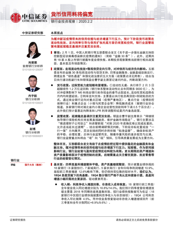 【中信证券】【20200202】银行业投资观察:货币信用料将偏宽-10页