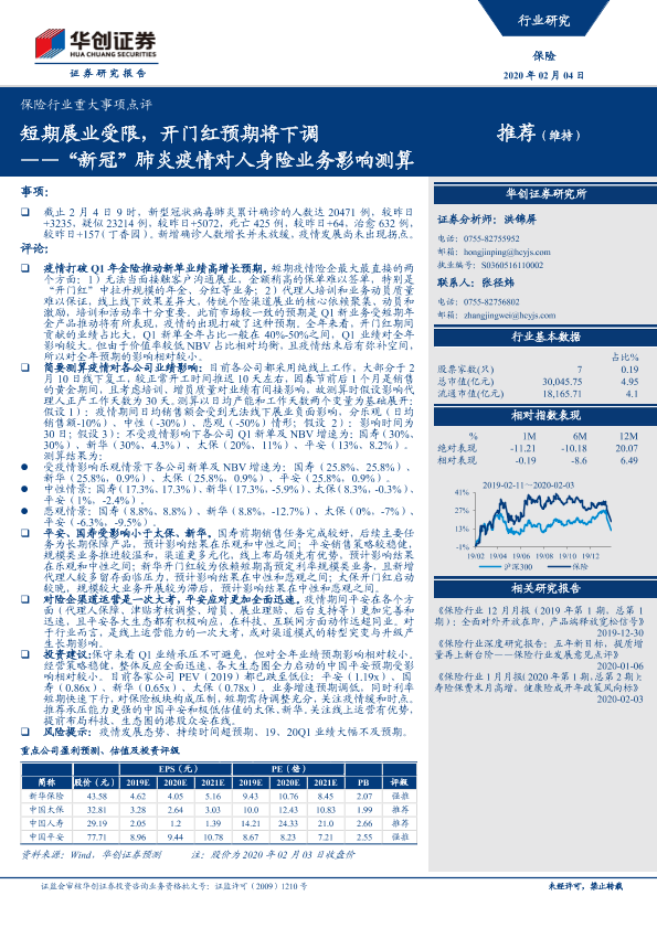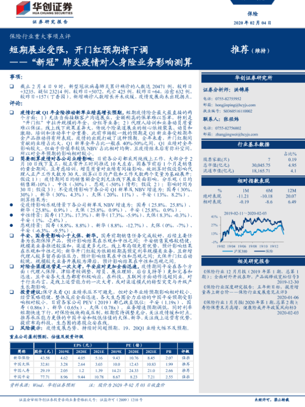 【华创证券】【20200204】新冠肺炎疫情对人身险业务影响测算:短期展业受限,开门红预期将下调-7页